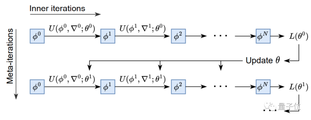 训练上,AI优化器采用元训练的方式,以参数值和梯度作为输入,输出需要更新的参数。