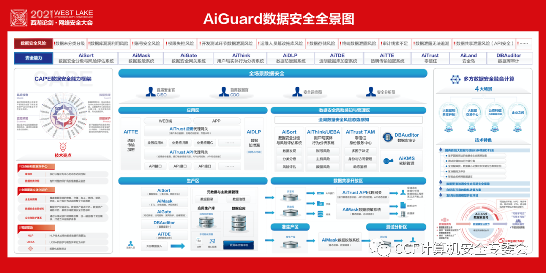 安恒信息站在时代与理论的前沿,从创立之初就关注数据安全,并在多年来不断完善、更新。2021年7月,在《数据安全法》实施前,发布数据安全整体解决方案,包含“CAPE”数据全生命周期防护体系、数据安全咨询服务体系、AiLand数据安全岛、AiTrust零信任解决方案、AiDSC数据安全管控平台、EDR与数据勒索防护等六大产品服务,上线“一网统管”数字安全系列产品。