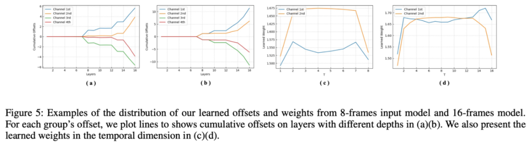 我们认为浅层的神经网络主要学习 2D 空间特征,在较深的网络中才开始逐渐学习时序维度特征,这和之前 3D 卷积网络中得到的结论是类似的。