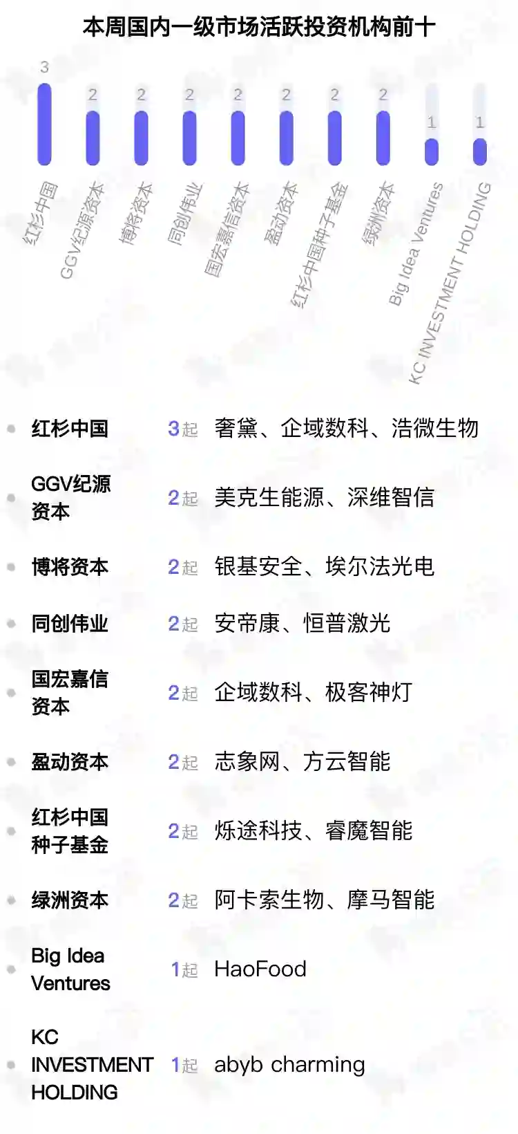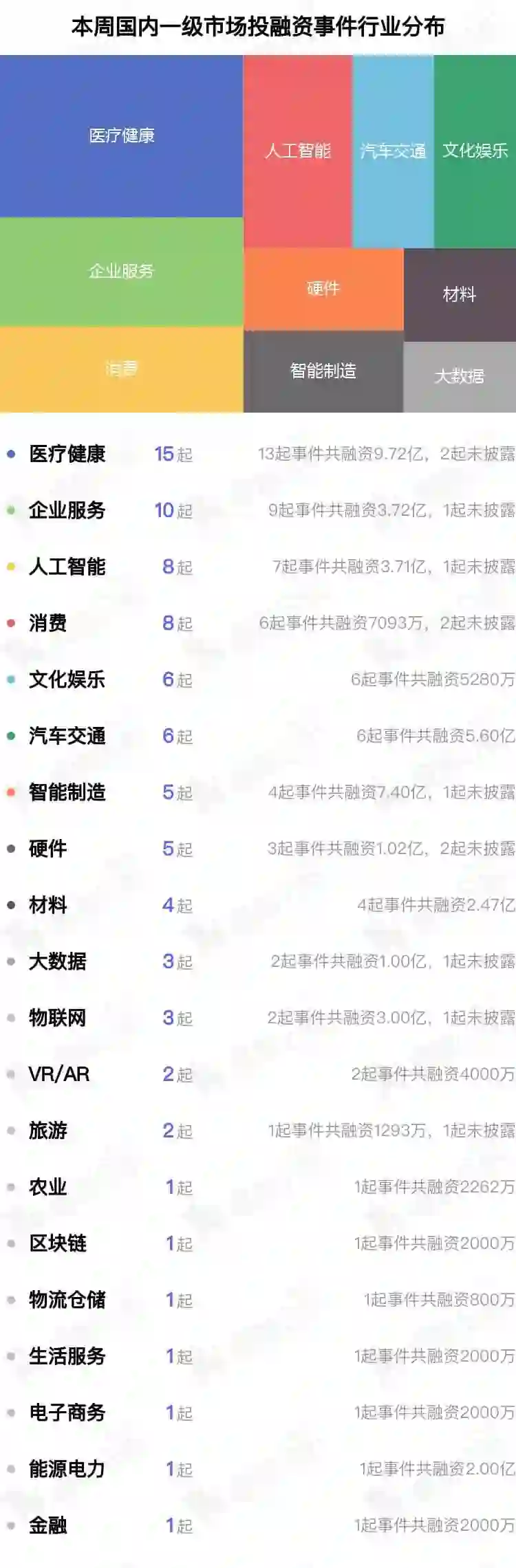 根据睿兽分析监测数据,本周国内一级市场发生融资事件
