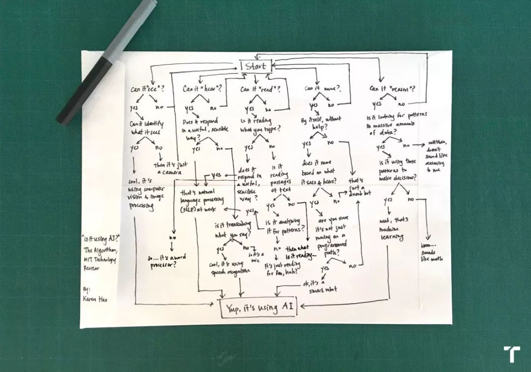 那么我们该怎么判断一个产品有没有用到 AI 技术呢?MIT review 的记者 Karen Hao 用一张图,简洁明了的解决了这个问题。
