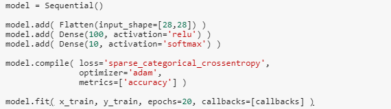 定义完 callbacks,我们只用把它当做参数传到 model.fit() 里。