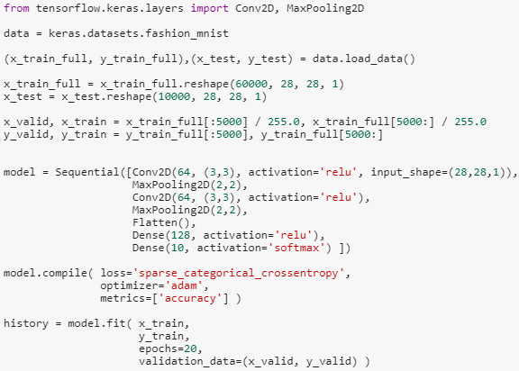 首先引进二维卷积层 Conv2D 和二维最大池化层 MaxPooling2D。在全连接层前我们放了两组 Conv2D + MaxPooling2D。