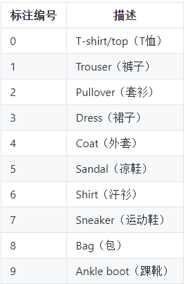 每个训练和测试样本都按照以下类别(总共有 10 类标签)进行了标注: