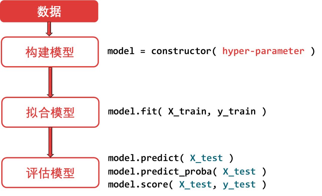 除了数据和模型,要完成一个任务还需定义损失函数(loss function)和指定算法(algorithm),它们都隐藏在 Scikit-Learn 的具体模型中,比如
