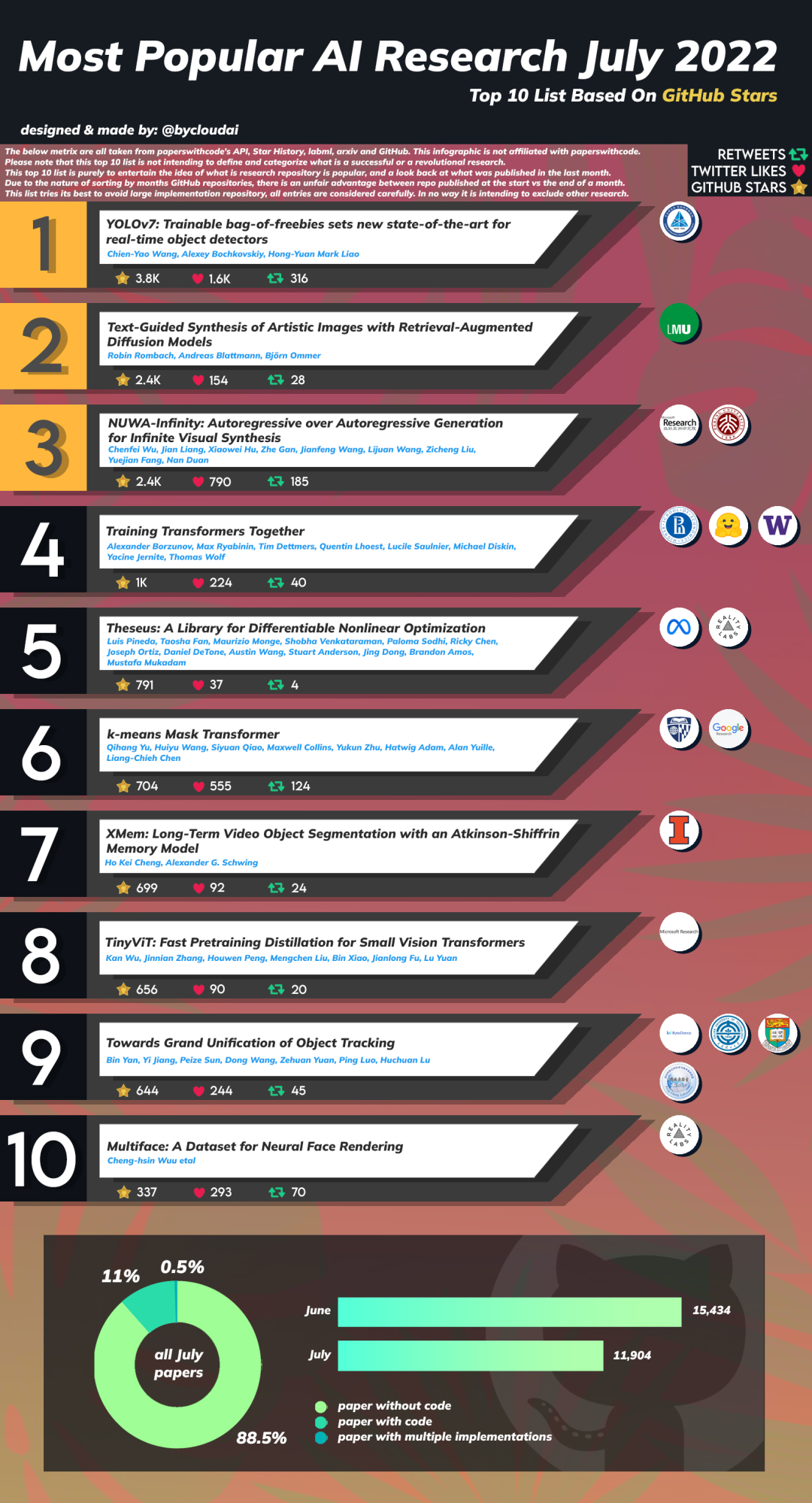 https://www.reddit.com/r/MachineLearning/comments/wi05tg/d_most_popular_ai_research_july_2022_pt_2_ranked/