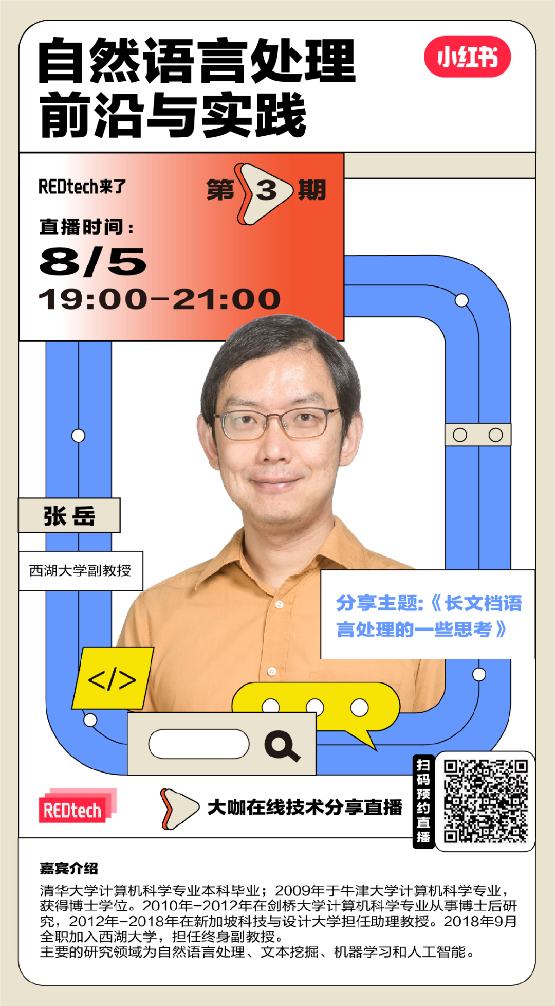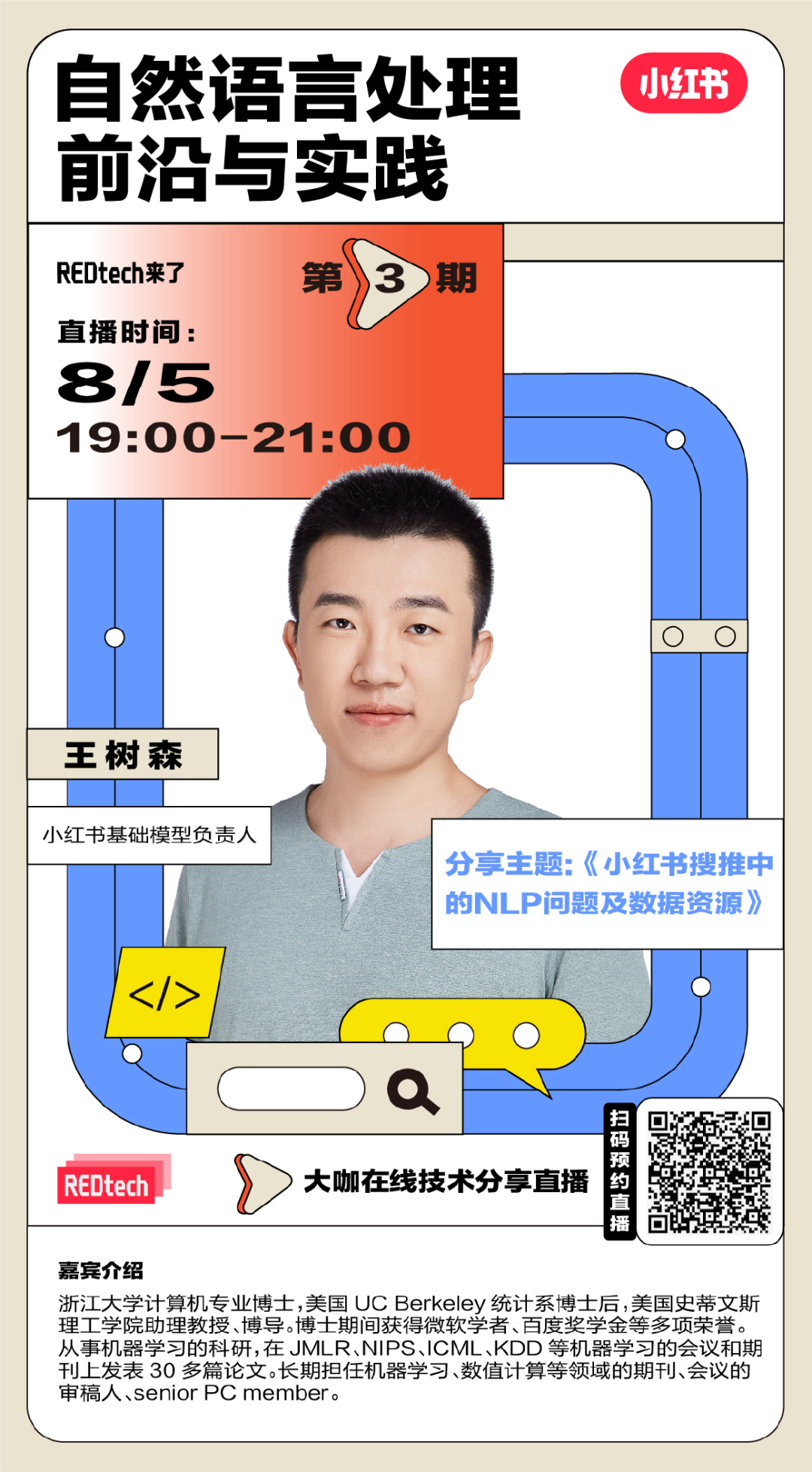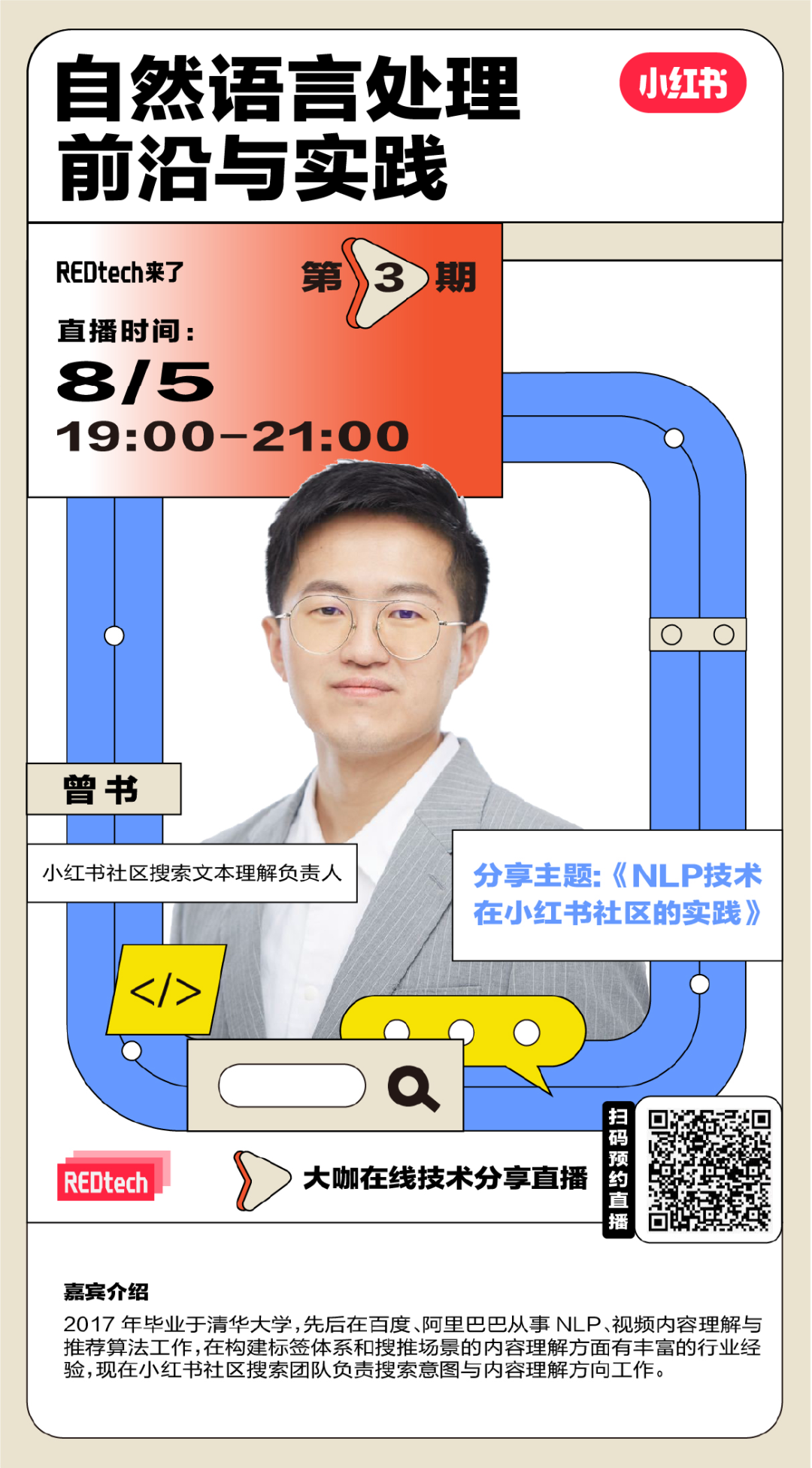 想要得到这些问题的解答,你一定不能错过小红书技术团队出品的《REDtech 来了》系列第三期技术直播。8月5日19:00,小红书将邀请业内顶尖专家和大家一同探讨“自然语言处理的前沿与实践”。