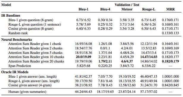 然后,研究人员将其放到亚马逊的Mechanical Turk平台上,让注释者根据每篇故事的摘要,设计10个问题并写出答案,注意,这里的注释者没有看过完整的故事,他们只是根据给出的摘要设计问题。