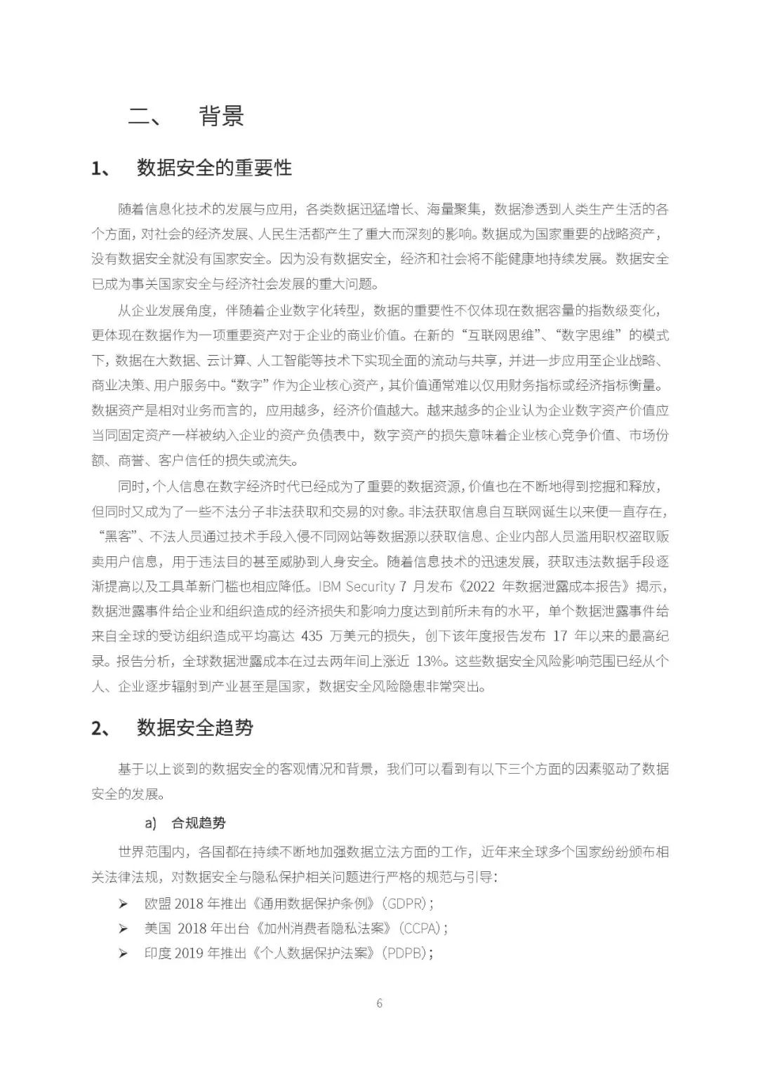 数据利用及大数据的快速发展在催生新产业形态的同时,成为数字经济发展的基石。数字经济 以新时代信息技术为基础,海量数据成为产业的重要资产,推动着产业的发展,同时驱动产业的创 新与提升。因发展而催生的数据安全风险,成为了经济发展、甚至国家安全的重大问题,因此要发 展数字经济,就必须提升数据安全治理能力,解决数据安全带来的风险。