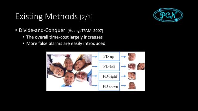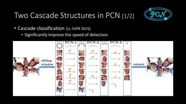 目前的许多旋转不变人脸检测算法需要在精度或者速度上进行妥协。我们提出的PCN算法目标是在保持很低的计算量的前提下,实现精准的旋转人脸检测。