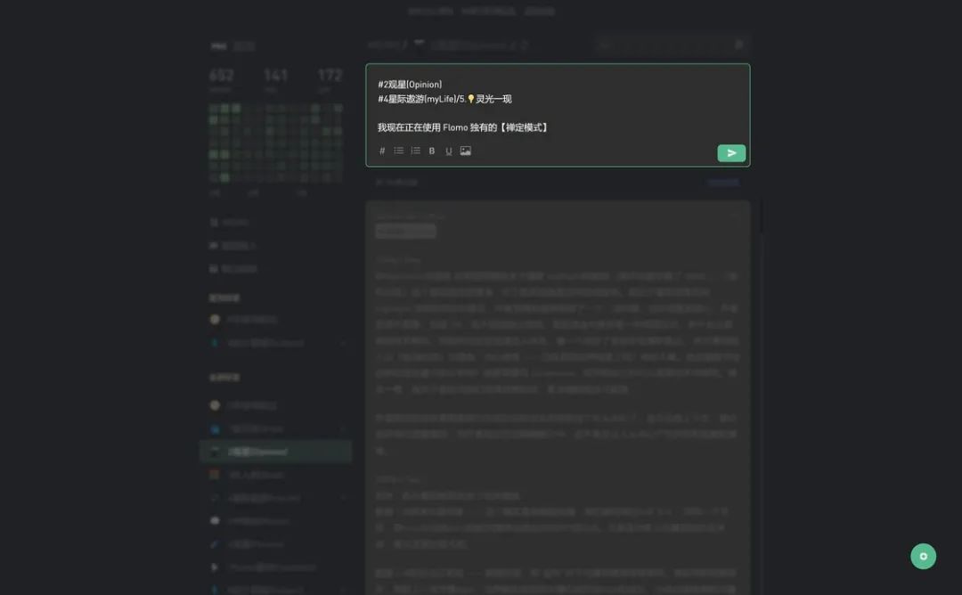 另外,Flomo 的更新也一直是不徐不疾的一种状态,但每一次更新都可以给到你惊喜。比如最近 PC 端新上的「禅定模式」。