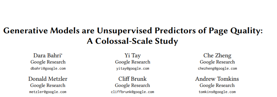 将生成式模型用于无监督评价网页语言/内容质量,通过人工评价证明,训练用来区分人工和机器生成文本的分类器,可作为“页面质量”的无监督预测器,在没有任何额外训练的情况下检测出低质量的网页内容。
