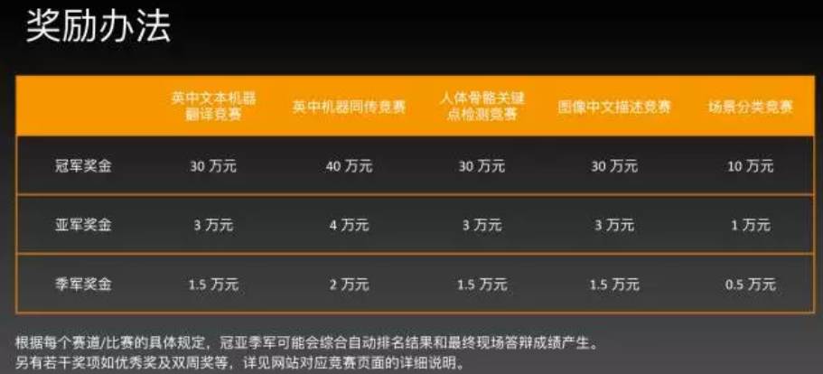 昨日( 9 月 4 日),首届“AI Challenger 全球 AI 挑战赛”于正式拉开帷幕,各路高手将展开为期三个月的比拼,并于 12 月中旬进行总决赛巅峰对决。获奖团队将分享合计超过 200 万人民币的奖金。