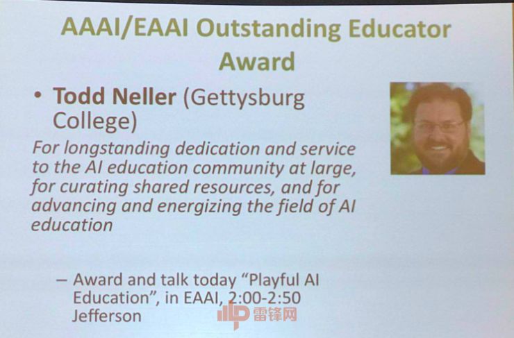 Todd Neller 荣获今年 AAAI 和 EAAI 联合授予的杰出教育奖,以表彰他在人工智能教育领域所作出的重要贡献。