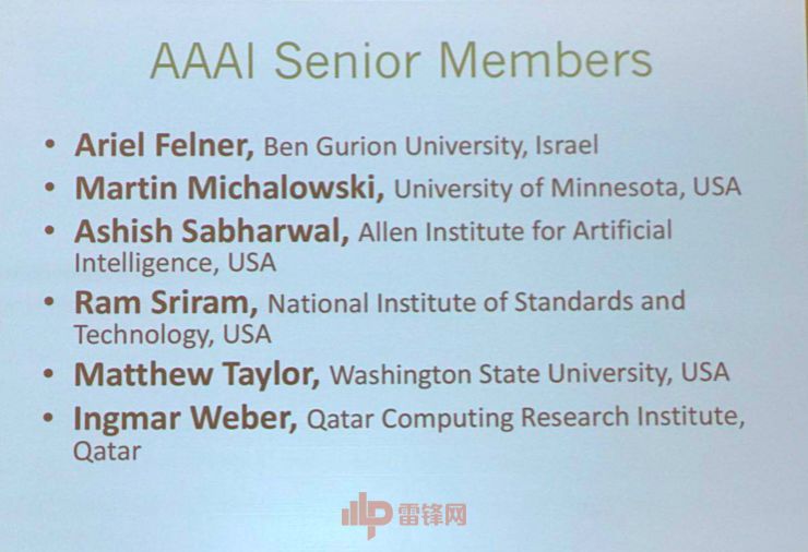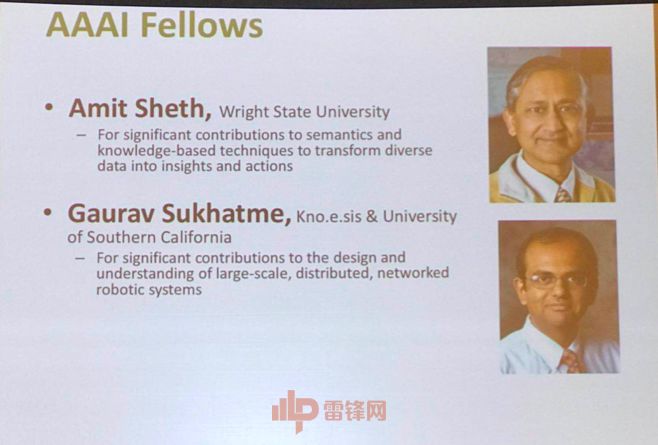 接下来是 AAAI Fellow 的公布仪式。今年的 AAAI 新当选 Fellow 全部被北美地区(美国、加拿大)的学者包揽,共 8 位,名单如下: