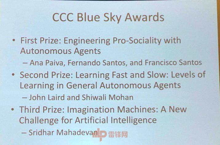 计算机研究协会计算社区联盟(CCC)与 AAAI 合作颁发的这一奖项,旨在肯定研究者充沛的想象。
