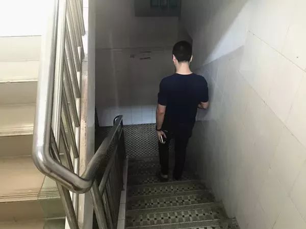 雷大同走在狭窄的出租屋楼道。 澎湃新闻记者 沈文迪 图