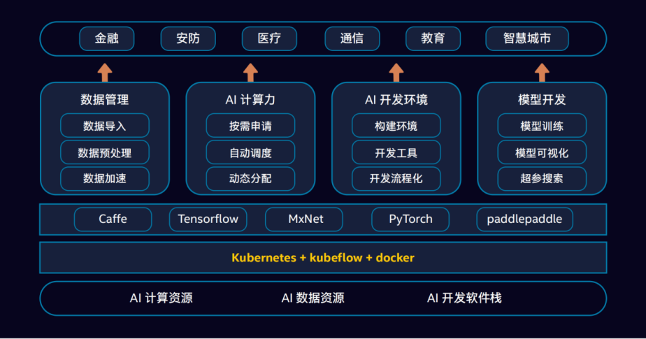 作为云原生的核心技术, Kubernetes 能够管理云平台中多个主机上的容器化应用,能够完成 AI 资源的统一部署、规划、更新、维护,有效提高 AI 资源管理率。此外,在基于 Kubernetes 的 AI 开发平台建设实践中,使用 CPU 服务器可有效利用空置资源、空闲时间,并通过 Kubernetes 的弹性资源调度分配给其它应用。而且 CPU 作为通用算力提供者,在采购成本、使用难度等方面有着重要优势,不仅支持 AI 运算,还可用于其他应用负载。