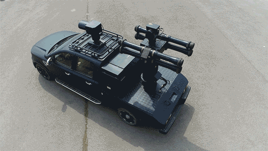 图为车载“网电”双模拦截系统拦截高速飞行的固定翼目标