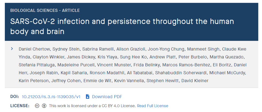 新冠病毒的厉害还不止于此,美国国立卫生研究员(NIH)最新的研究提出,新冠病毒表现出嗜神经性,鼻咽拭子转阴后继续在大脑以及其他组织内复制。