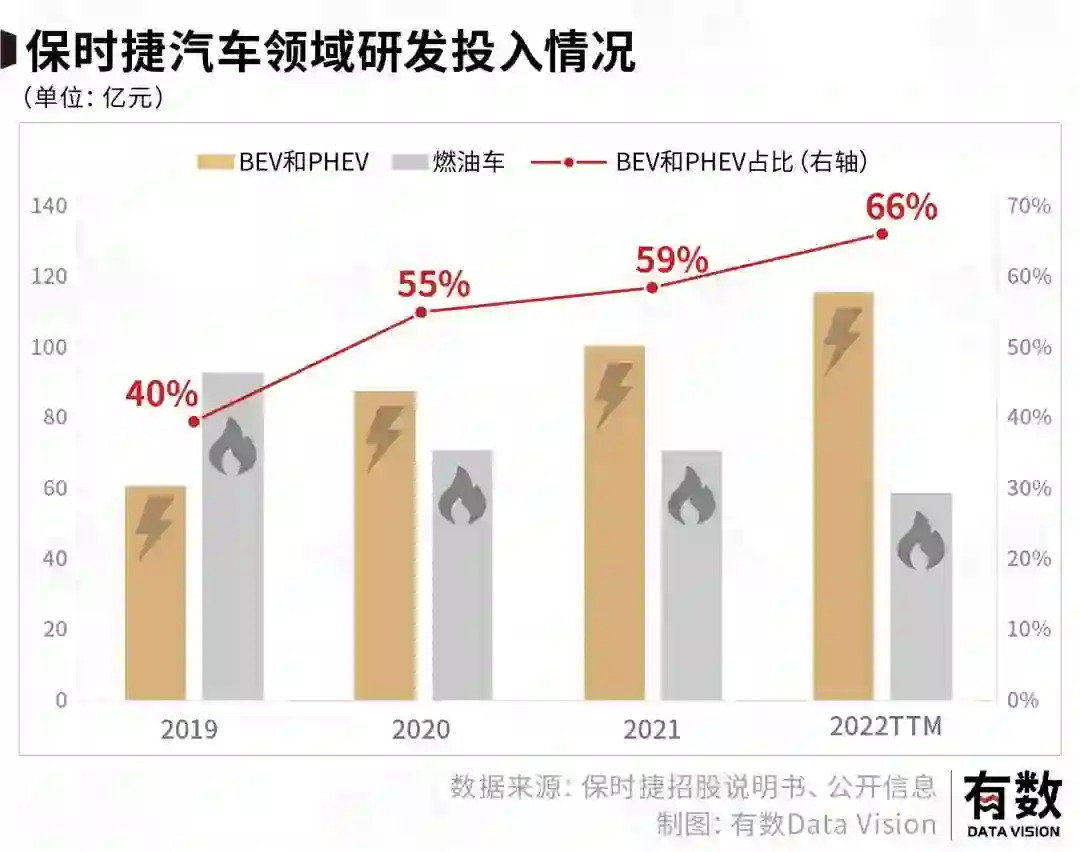 金额和比例双增长,可以看出保时捷押注电动化的决心。