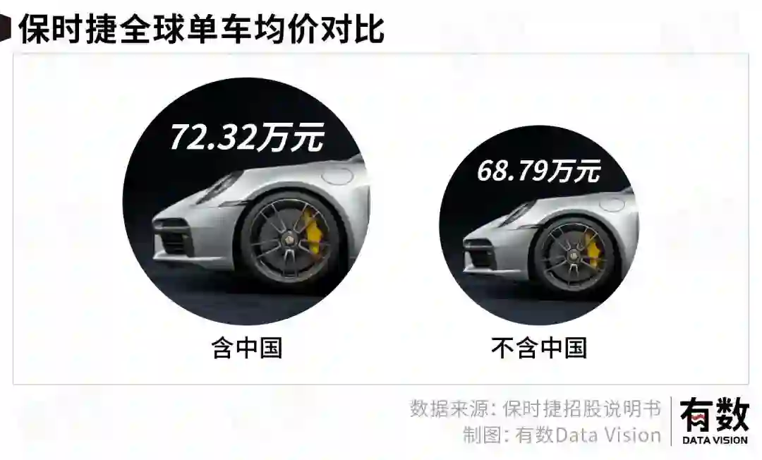 包含中国区的保时捷全球单车均价为72.32万元,不含中国直接跌至68.79万元