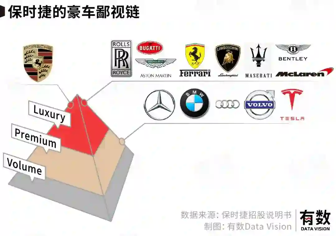 在保时捷的招股书中,有一张他们自己制作的豪车分级图:
