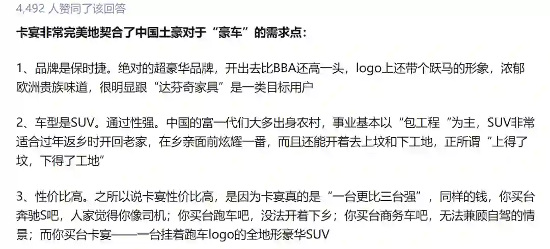 保时捷在中国卖了多少SUV虽未详细披露,但此前有知乎大V锐评: