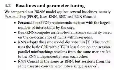 本文的贡献在于提出一种层次化的 RNN 模型,相比之前的工作,可以刻画 session 中用户个人的兴趣变化,做用户个性化的 session 推荐。