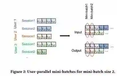 Training strategy:为了更好的并行计算,论文采用了 mini-batch 的处理,即把不同的session 拼接起来,同一个 sequence 遇到下一个 Session 时,要注意将 GRU 中的一些向量重新初化。
