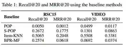 BPR-MF:一种矩阵分解法,新会话的特征向量为其内的 item 的特征向量的平均,把它作为用户特征向量。