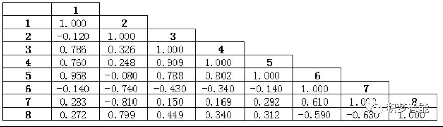 由上图,可知测点1、3、4、5为后部分总成上测点,点2、6、7、8为为前部分总成上测点。将该总成上各测点的相关性系数分别结算出来,查找规律。