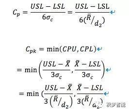 在Cp和Cpk公式中,σc指子组内变差,它仅仅是由子组内变差引起的变差。估计值可从控制图R/d2或s/c4得到。