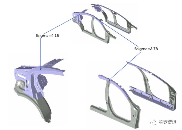 再例如,利用数据的相关性分析,能快速找到质量问题的原因。如图所示,某白车身上右侧围上两个测点的6σ一直保持较大的数值,现在需要查找原因,降低他们的波动值。