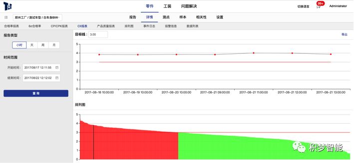 由于收集了各个方面、多个生产过程的数据,他们利用积梦数据分析在系统中常见的质量工具来分析数据,如趋势图、控制图、排列图、直方图、相关性分析等,利用这些工具,用户可以从不同的方面来了解产品的质量状态,来查找产品质量的变化趋势。