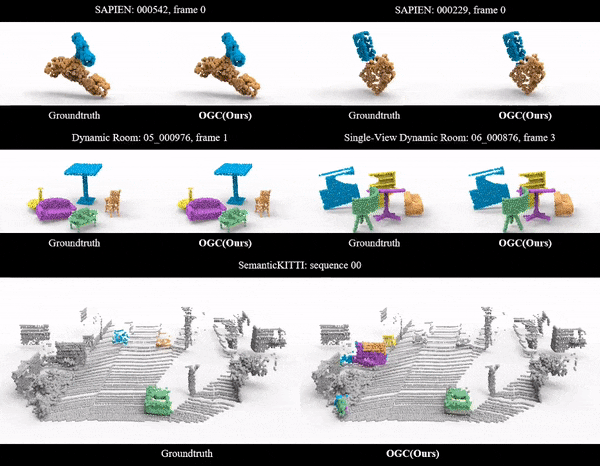 1) OGC: Unsupervised 3D Object Segmentation from Rigid Dynamics of Point Clouds, NeurIPS 2022.