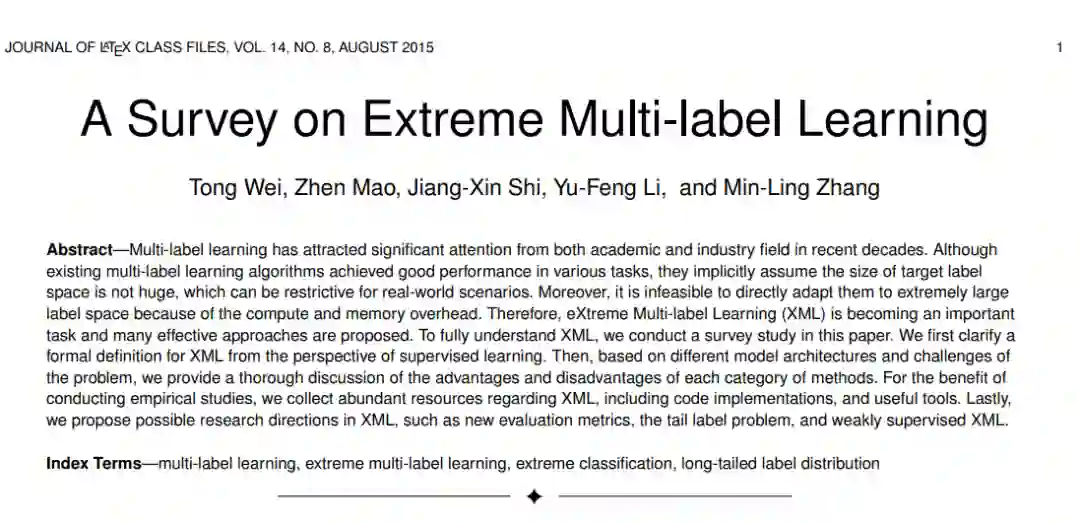 后台回复“XMLS” 就可以获取《东南大学最新《超限多标签学习XML》研究综述,18页pdf涵盖167篇文献阐述XML方法体系》专知下载链接