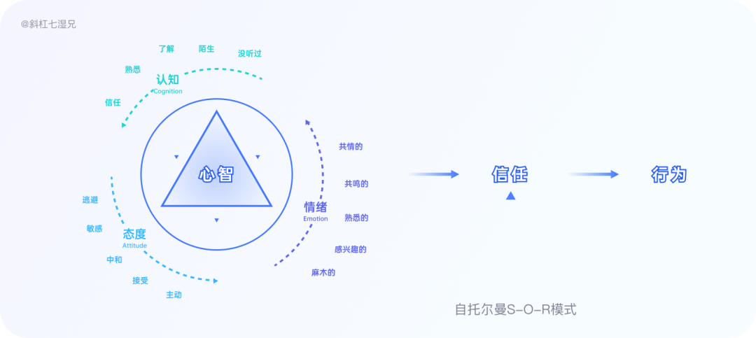 现实生活中,用户从普通的态度到信任一款产品,都是基于先「认知」、再「情绪」、定「态度」这三个阶段而建立的,在用户建立了对产品的心智之后,才会产生相关的信任力,从而产生相关的付费行为。