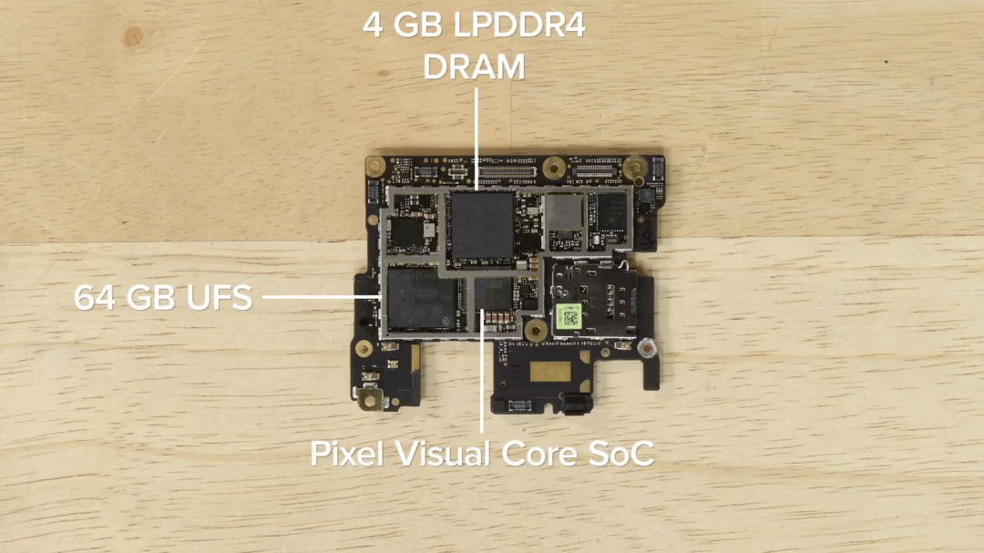 怎么办呢?我们可以从历史经验里找一点灵感。比如作为计算摄影先驱的谷歌,其实很早就发现 SoC 并不能满足 HDR 照片多帧合成的算力需求,于是在2017年发布的 Pixel 2 系列上搭载了一颗定制图像芯片:Pixel Visual Core。它让 HDR 的运算速度提升了 5 倍,功耗却只有通用 SoC 的十分之一。