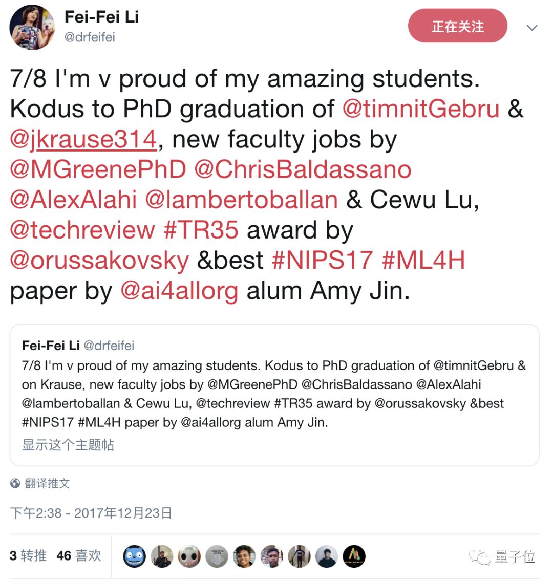 这个报道被李飞飞点赞,而且在自己的Twitter上特地发文表扬——而这,已经是李飞飞三次公开表扬这位小姑娘了。