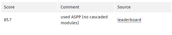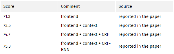 该论文分别评估了这两个已提出的模型。两个模型在 验证集上的性能相似,带有 ASPP 的模型性能稍好,且未使用 CRF。这两个模型优于 DeepLabv2 中最优的模型。论文作者还提到性能的改进来自于批量归一化操作和更好的多尺度背景编码方式。