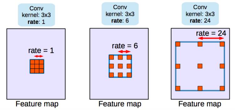 Dilated/atrous 卷积,rate=1 是典型的卷积结构