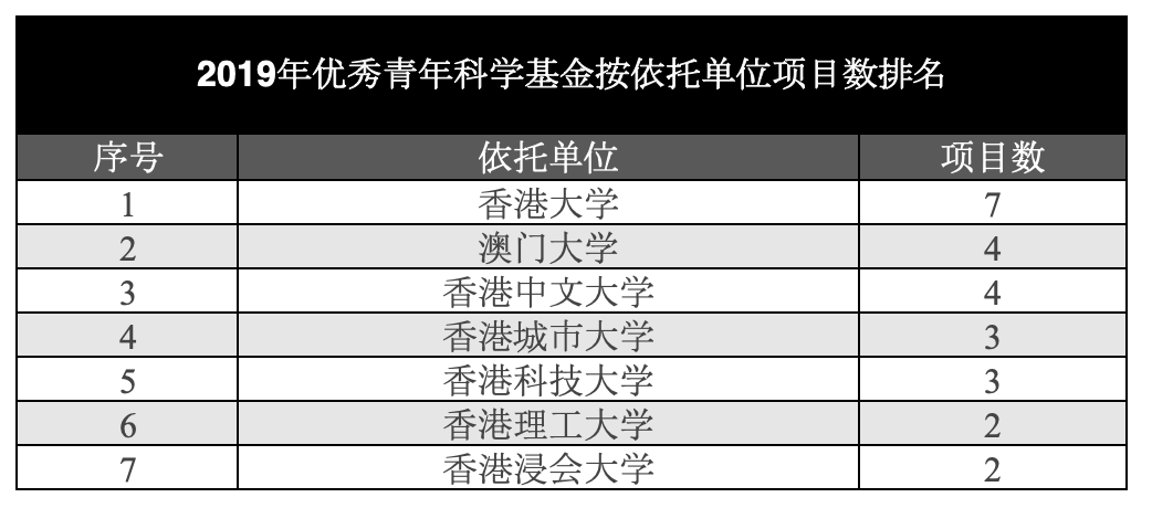所涉及的依托单位分别是香港大学、澳门大学、香港中文大学、香港城市大学、香港科技大学、香港理工大学以及香港浸会大学。