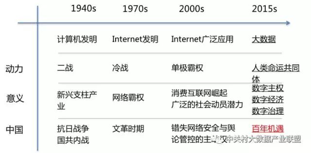 我们正处于从追随者、模仿者到开拓者、引领者的换挡时期。引领者或因进入创新无人区而彷徨,但历史总是彷徨的向导,通过回顾大数据发展的历史脉络,可以为我们解答建设数字中国的若干问题。本文简要的把大数据发展的历史,归结为四个阶段,剖析每个阶段我国的得失,为今天我们应该采取的行动提供借鉴。