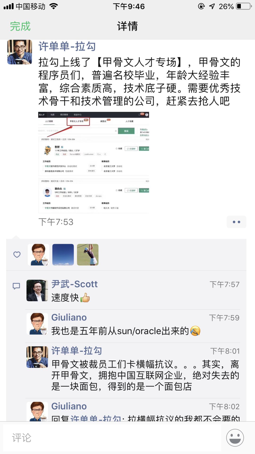 不过更引人注意的是,许单单好友、前甲骨文中国公司员工的那句留言:拉横幅抗议的我都不会要的。