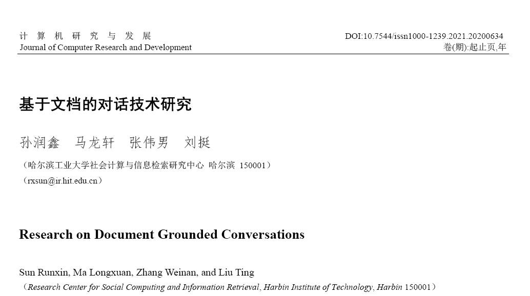 基于文档的对话是一项在讨论特定文档的内容时,生成较自然对话回复的任务.与以往基于知识的对话不同,该任务采用文档作为知识源,因此能够使用较为广泛的知识,且无需对其预先进行构建.并且其与基于文档的问答也有所不同,相较于后者此时不仅需要考虑对话与文档之间的关系,同时还应考虑对话内部的联系以对其充分理解.针对这一任务,我们应主要从3个方面进行考虑:1)理解对话中各句之间的关系;2)理解对话与文档之间的关系;3)根据对话上下文,从文档中筛选有关信息以生成相应回复.