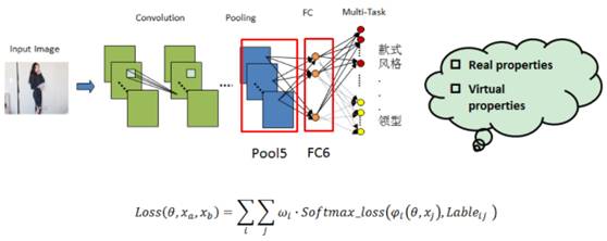 其次我们采用了属性label和虚拟label训练框架来训练精排的深度特征: