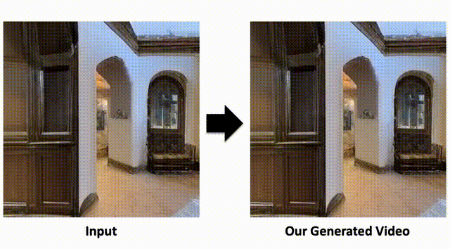 比如给出一个房间门口,它就能合成穿过门、走过走廊后的场景了。