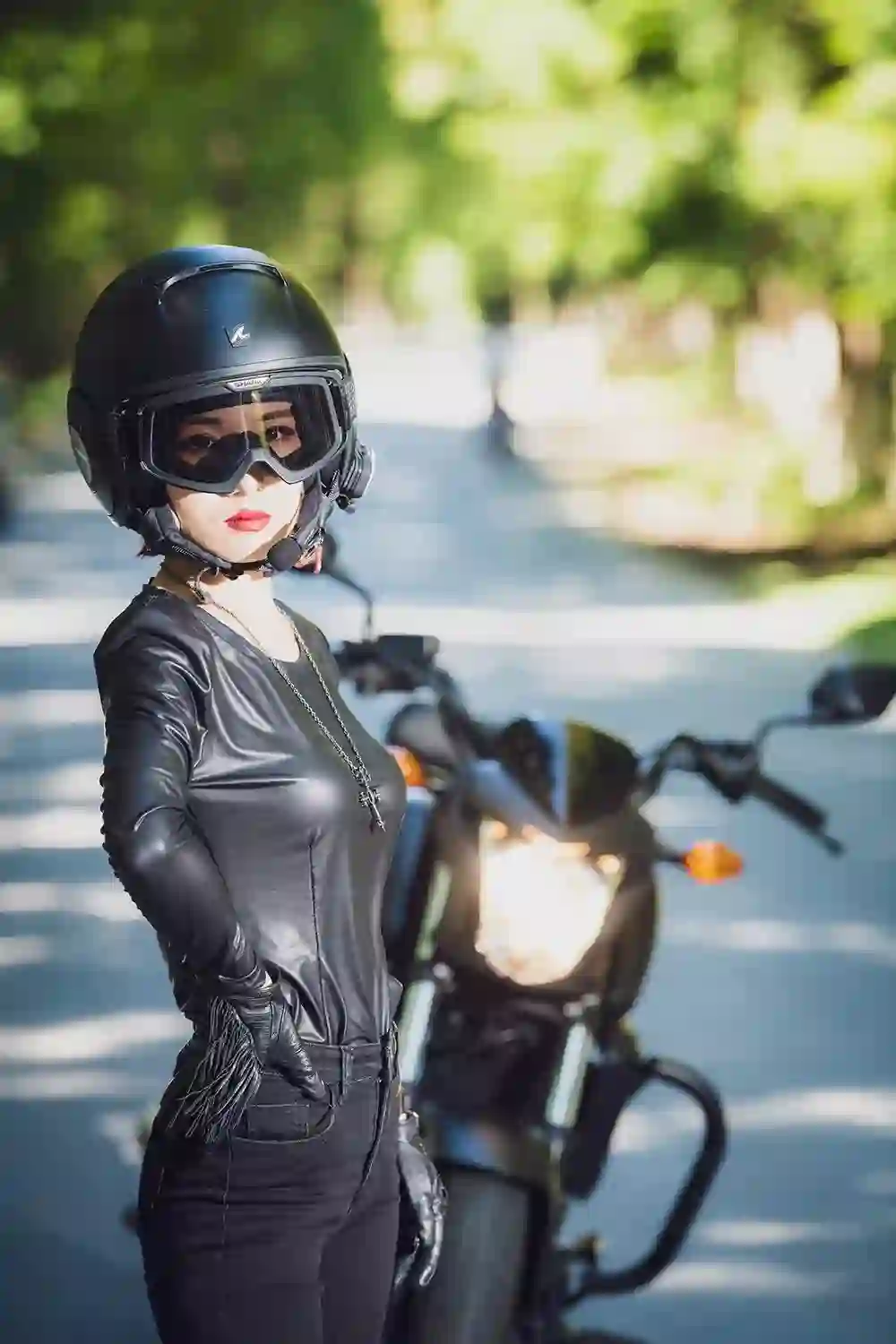 跨上车座,点火,挂挡,给油,发动。伏身在重量5倍于自己体重的摩托车上,她的身高勉强可以hold住座驾。伴着两声油门的轰鸣,芭比出动。