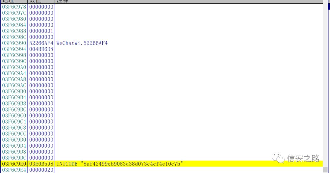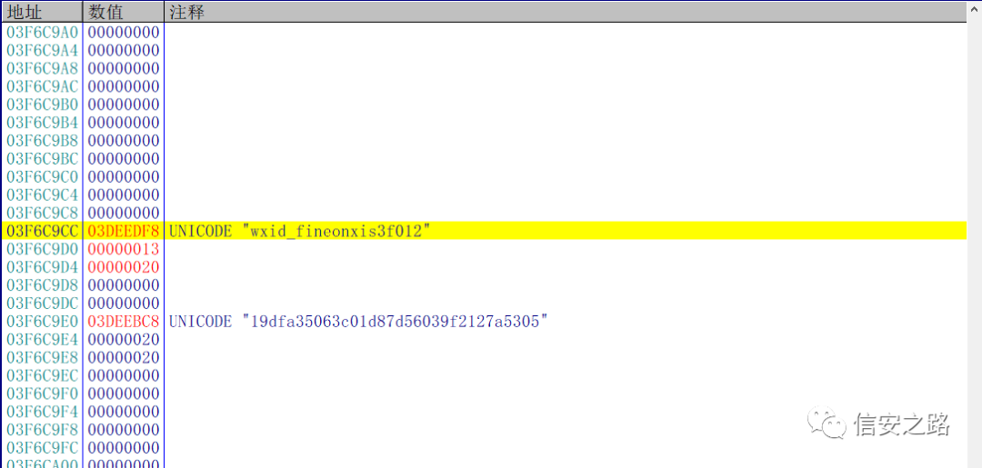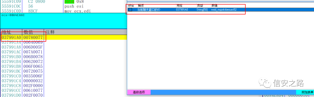 此时 edx 指向微信 ID,[edx+4] 保存的是微信 ID 的长度